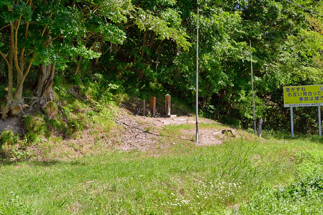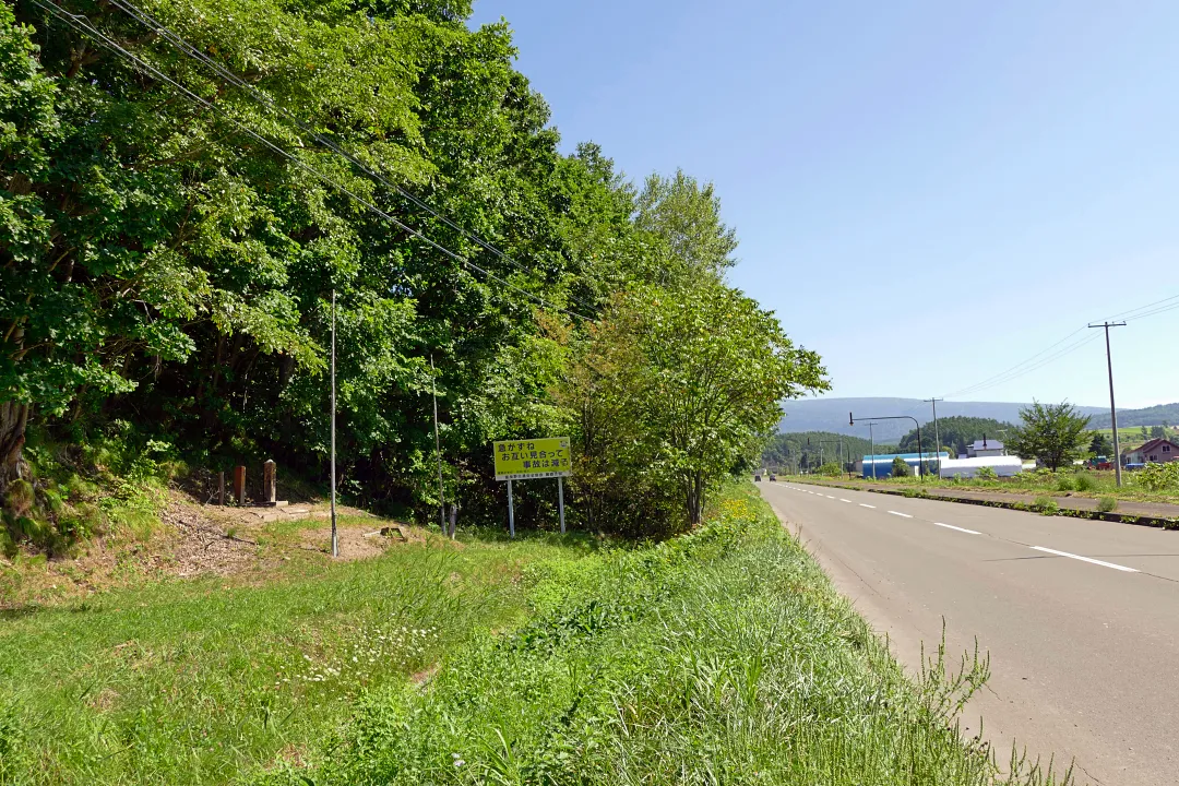 富良野の観光名所の一つ「麓郷の森」近く、西六郷の道道253号線沿いに小さな木柱が2本。