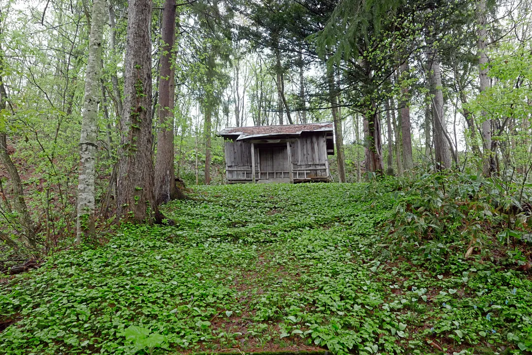 水神龍王神社から1.5kmほどにある旭川市の下水処理場の前から道道と別れて細い道に入ります。