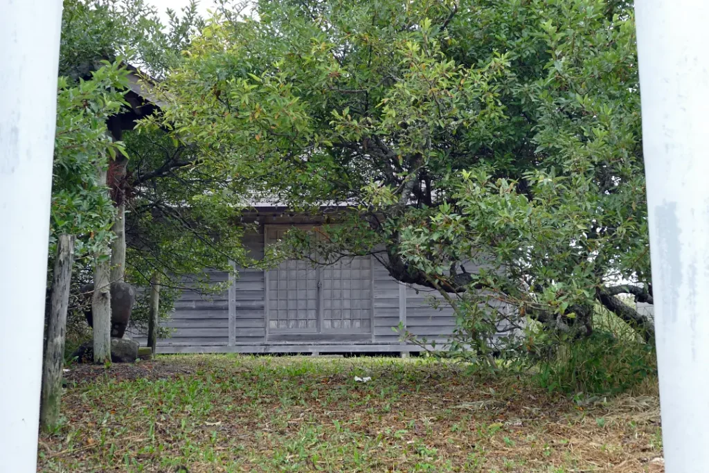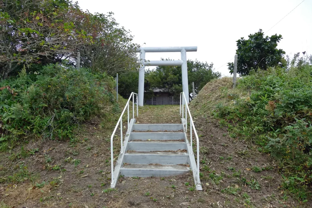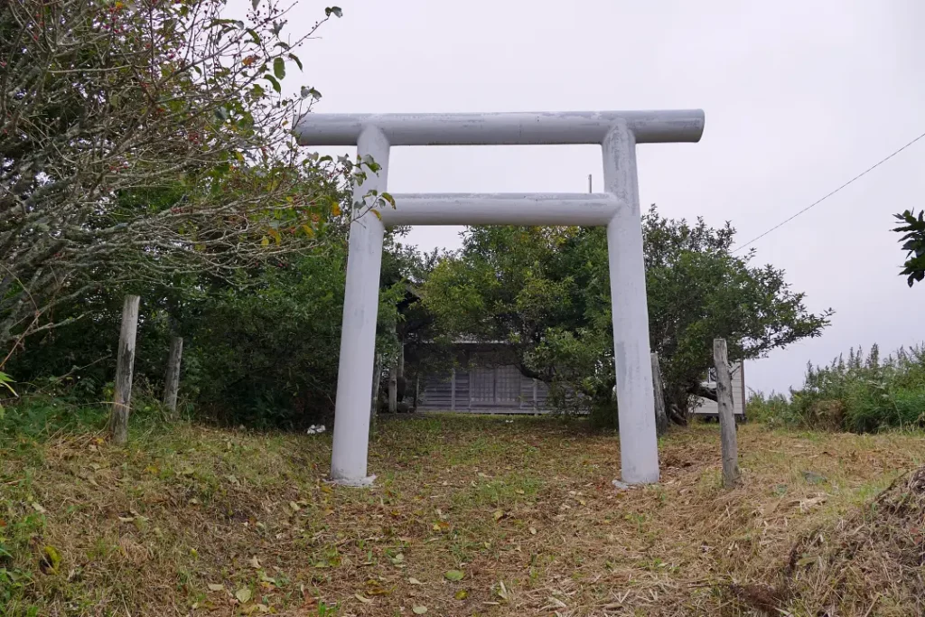 国道44号線から一本海側に入った細い道路沿い、少し小高くなった場所に白い鳥居が見えました。