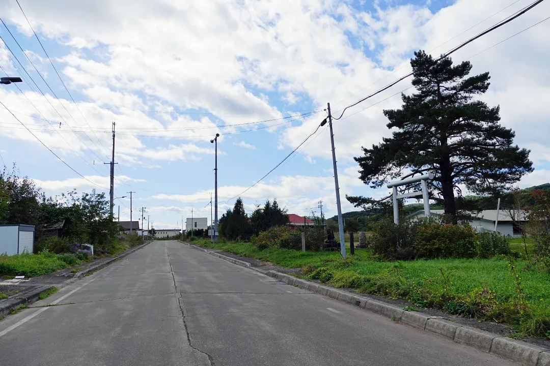 上利別本町の国道と平行して走る道路沿いにシルバーの鳥居。