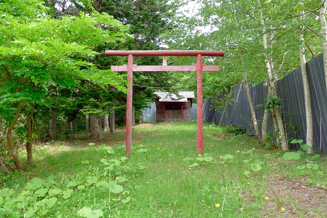 道道998号線を古平町から当丸峠方向へ進むと、道道569号線との三叉路手前に小さな赤い鳥居が建っています。