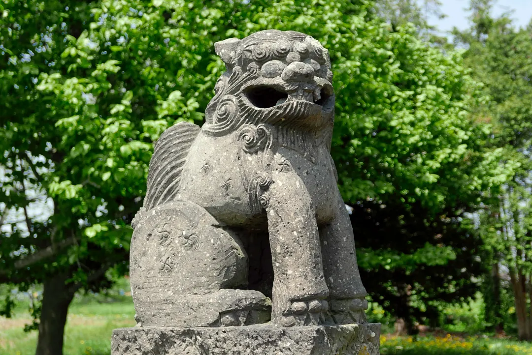 味わいのある風貌の狛犬さん。明治三十七年三月建立。