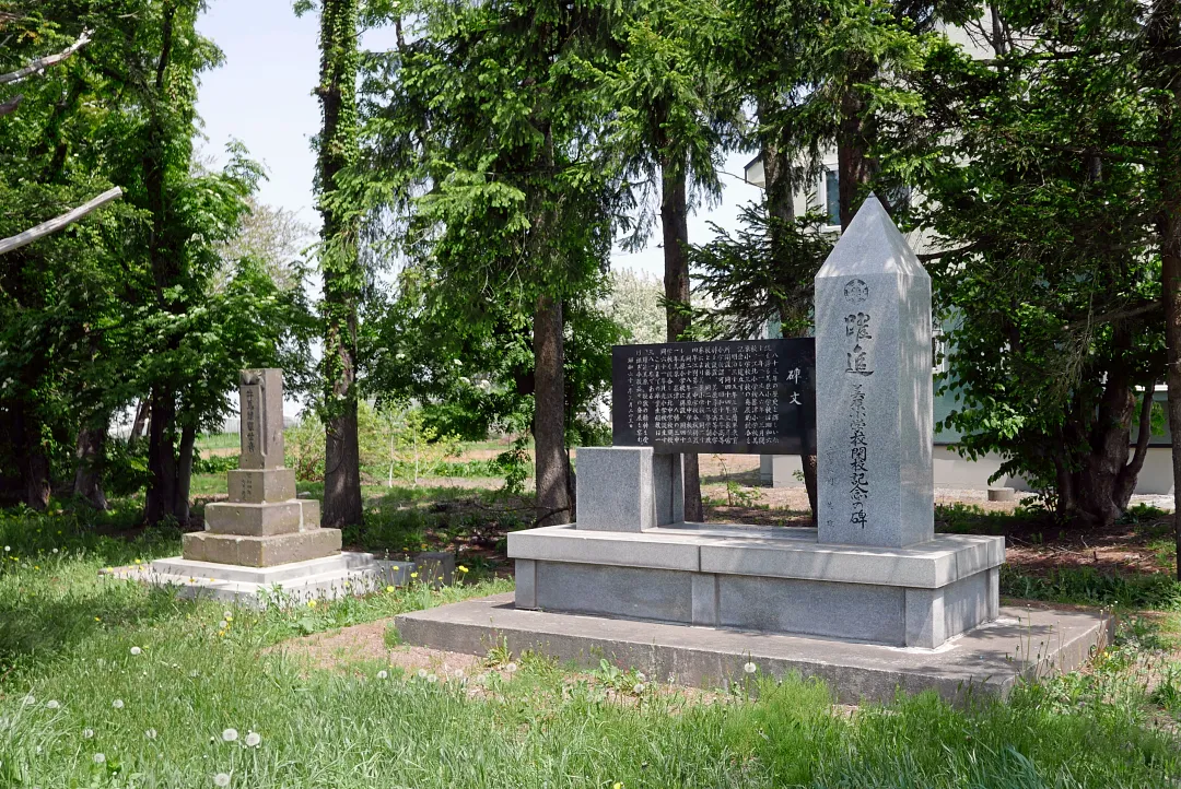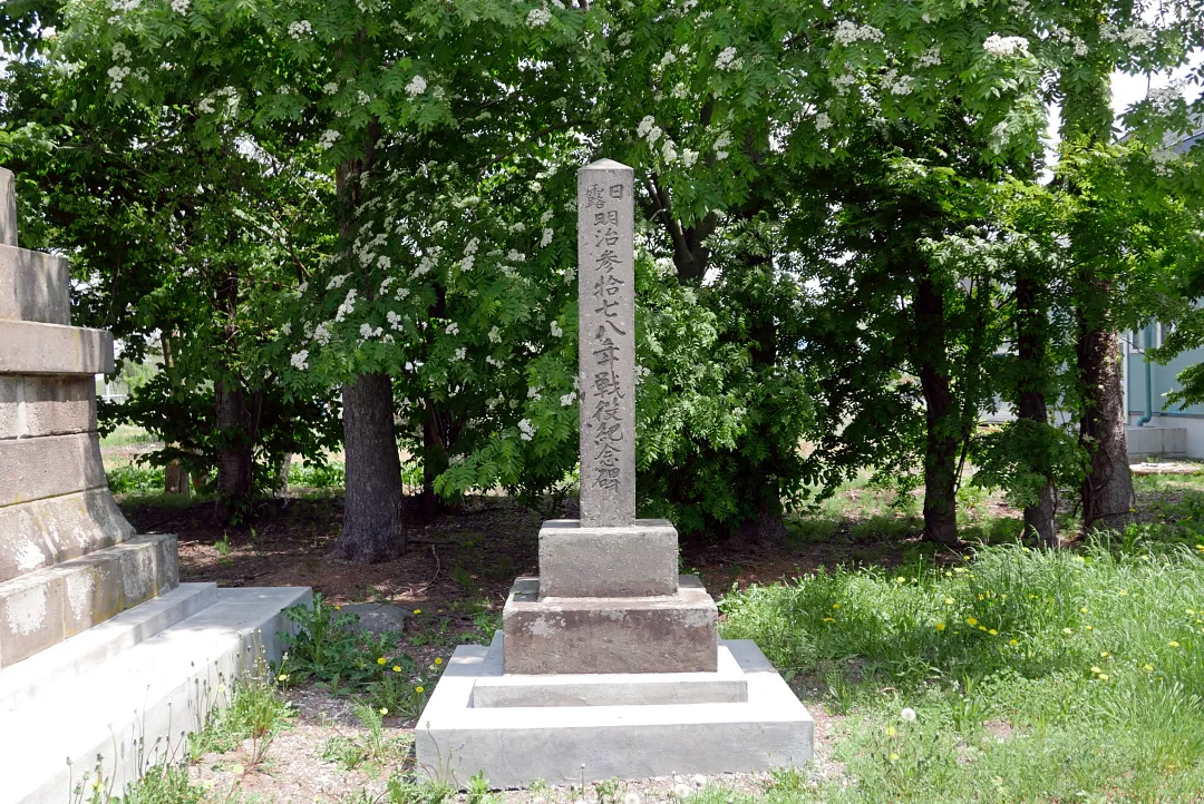 その隣の細長い石碑は「日露明治参拾七八年戦役紀念碑」。