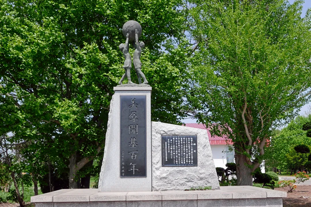 美原神社の境内というよりは自治会館の入口に建つ美原開基百年記念碑。