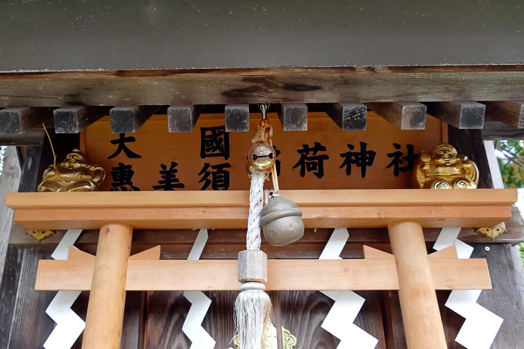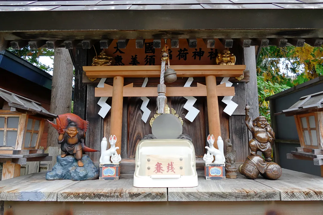 小さな祠の社殿は境内社、大國・恵美須稲荷神社。