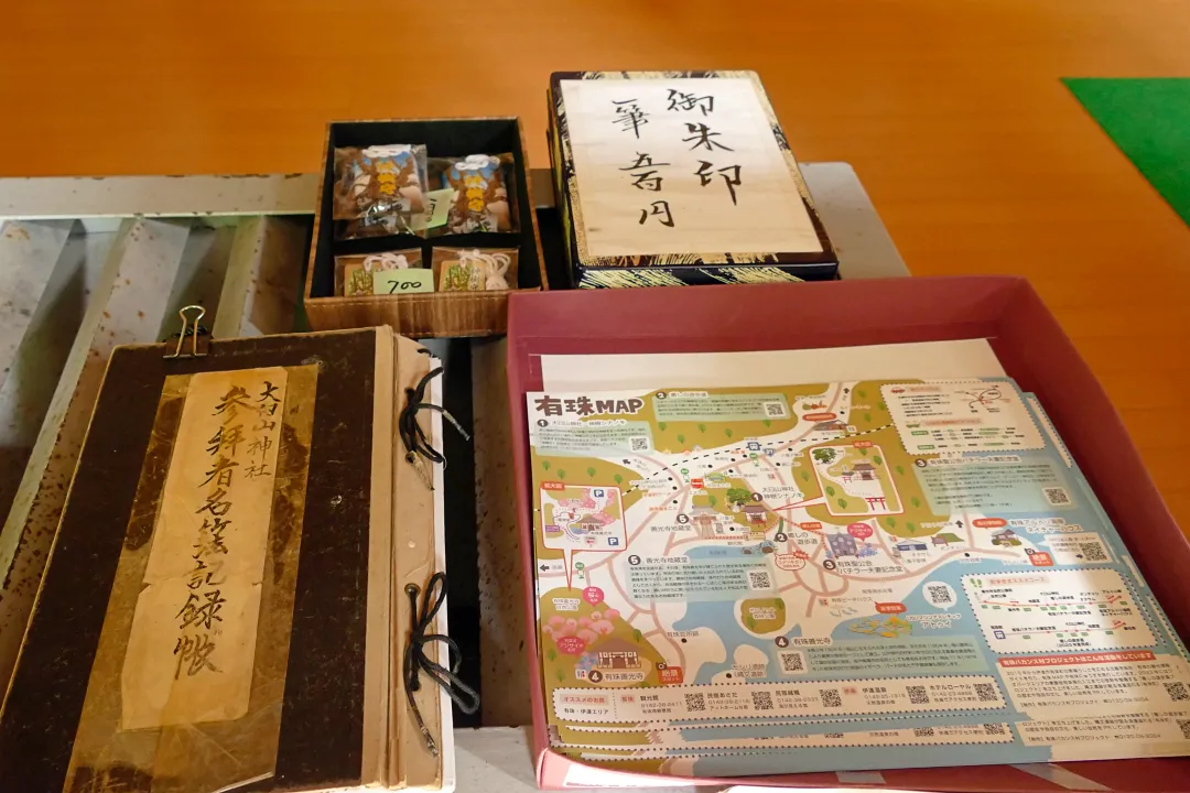大臼山神社の御朱印は、拝殿内の賽銭箱の上に書き置きが用意されていました。