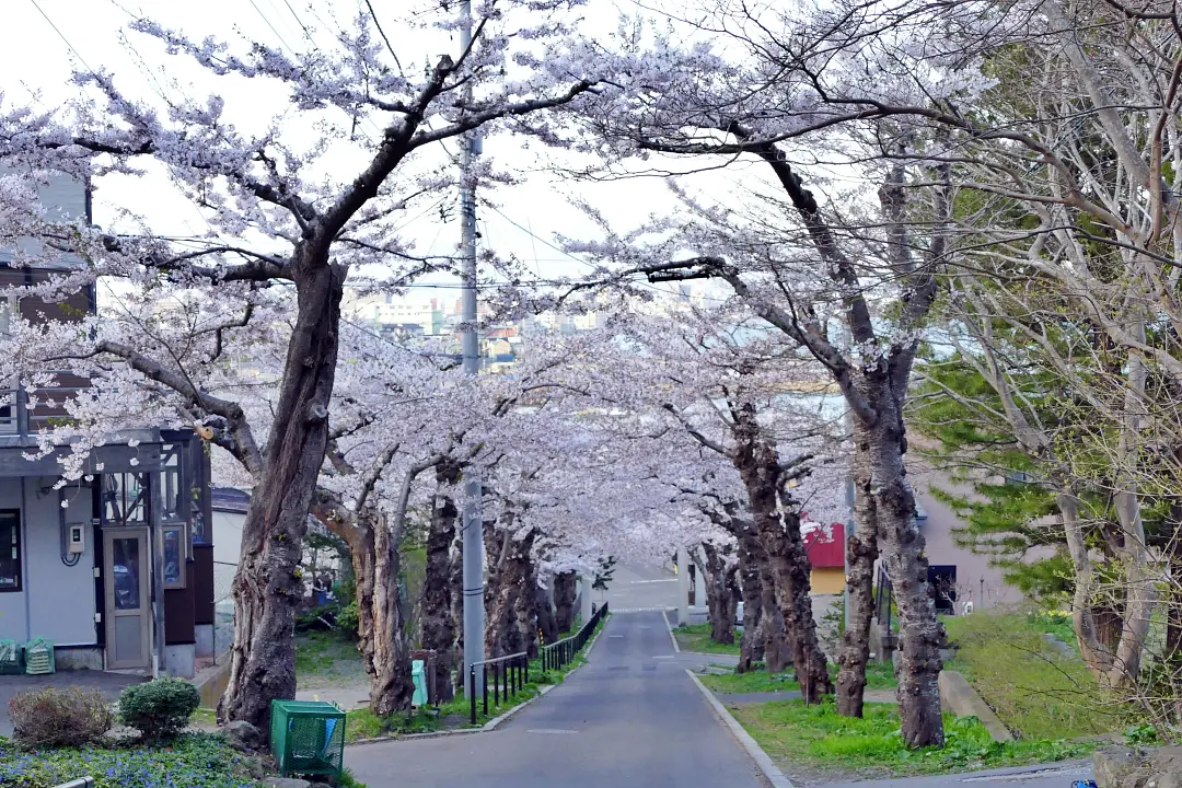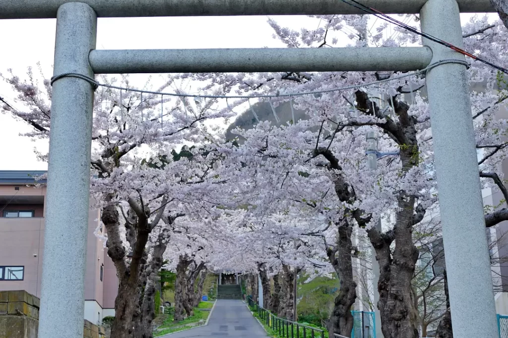 参道の桜並木はほぼ満開で時期的には最高でした。函館市内の隠れたさくらの名所という称号に間違いがなかったことを確認することができました。