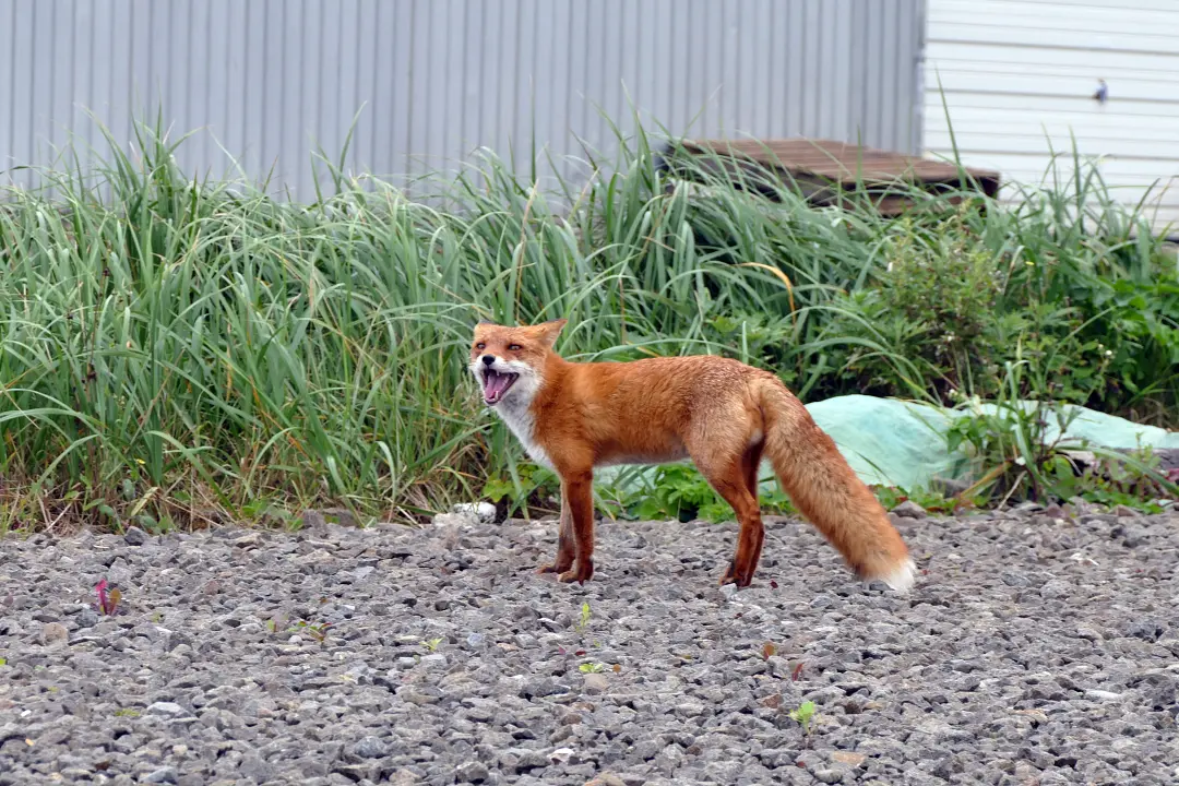 神社に着いたとき出迎えてくれたのはキツネさん。