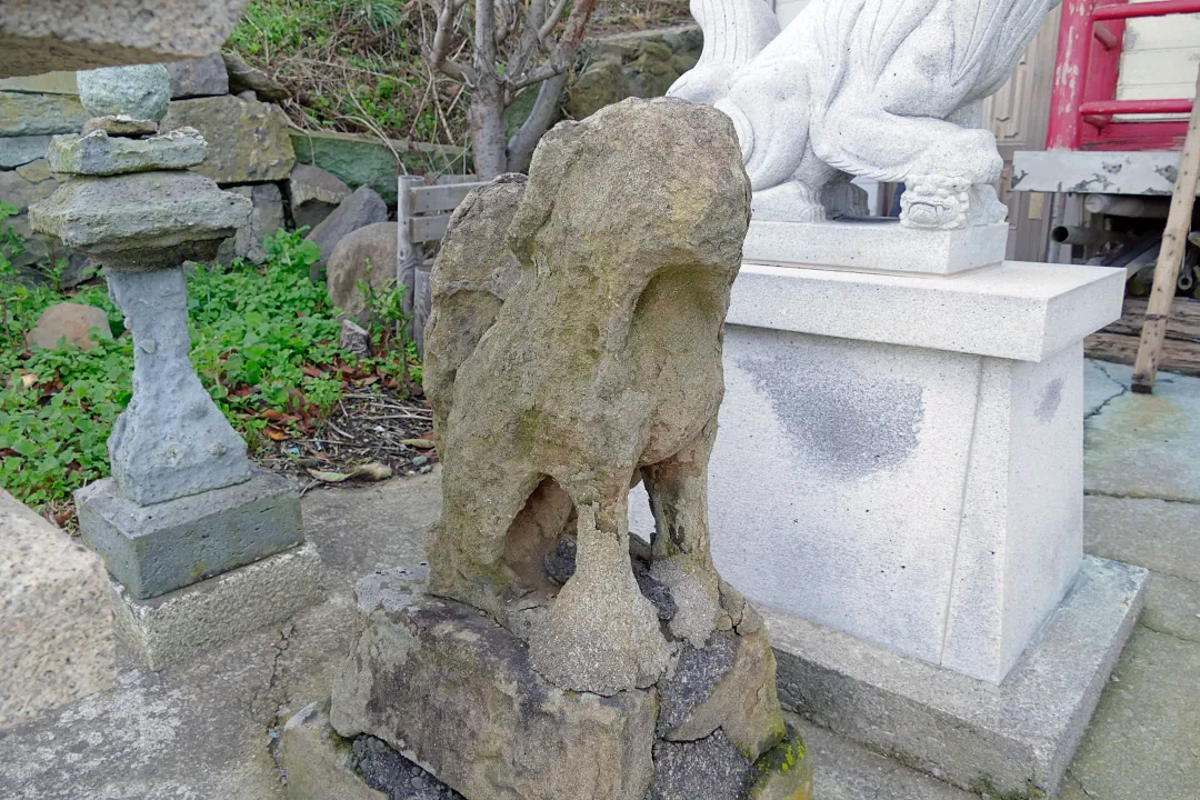 その手前に鎮座する狛犬さんは風化が激しく顔の表情はわかりませんが阿吽の区別だけはつきそうです。