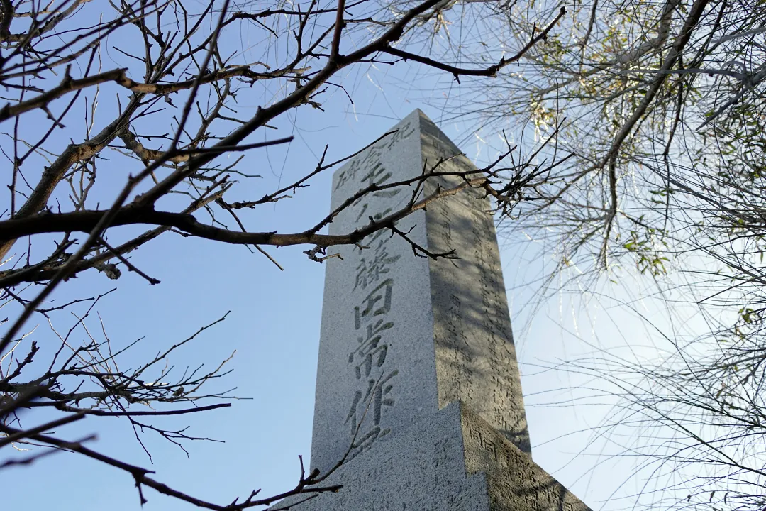 社殿に向かって右側の石碑には「紀念碑 正八位藤田常作君」と刻まれています。
